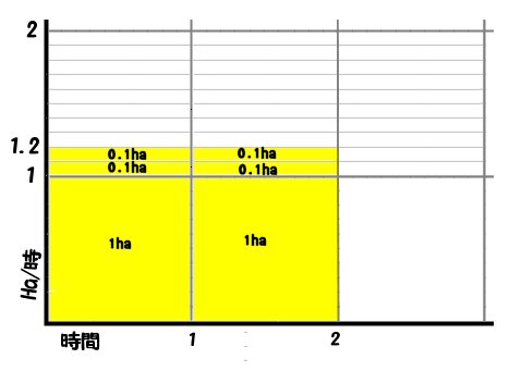 このトラクターで2時間畑を耕すと、全部で何ヘクタール耕すことができるでしょう。