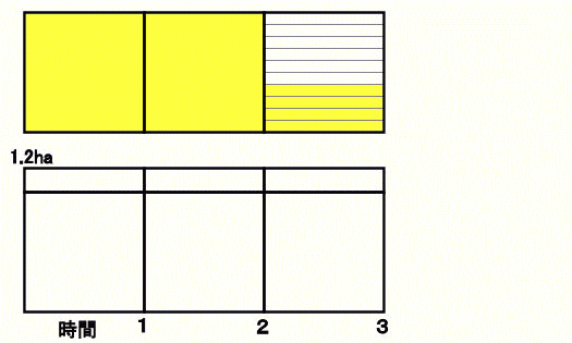 1.4時間の中に入れるには、1時間に2ヘクタール耕せばいいのです。7
