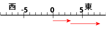 西へ-5進むのは、-(-5)=+(+5) だから