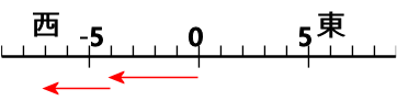 西へ+3進むのは、-(+3)=+(-3) だから
