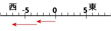 西へ+4進むのは、-(+4)=+(-4) だから