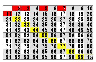 エラストテネスの篩(ふるい)で11の倍数もみんな消してみました。