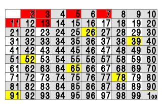 エラストテネスの篩(ふるい)で13の倍数をみんな消してみました。