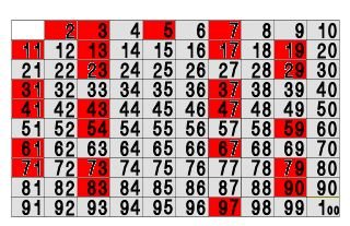 エラストテネスの篩(ふるい)で19の倍数はもうみんな消えていますね