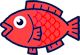あおいさかなと、あかいさかなが、みんなで4ひきおよいでいます。