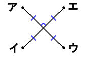 次の図のアイウエをつなぐとどんな形になるでしょう。
