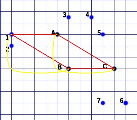 点A・B・Cともう一つの点をつなげてできる平行四辺形のなかで
