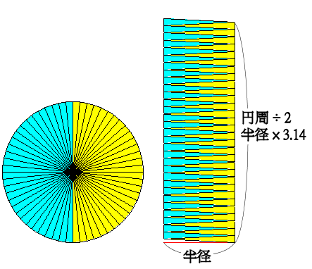 直径×3.14÷2 になります。 これは、半径×3.14 と同じです。
