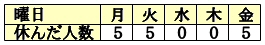 下の表から、1日平均何人のひとが休んだことになりますか。