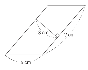 4,下の平行四辺形の面積を求める式と答えを書きましょう。