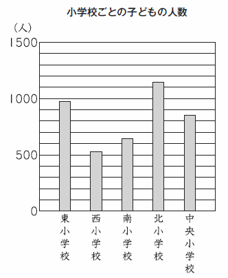 下の棒グラフは、小学校ごとの子どもの人数を表しています。