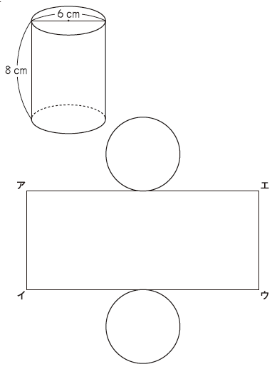 この円柱の展開図を、下のように側面を長方形にしてかきました。