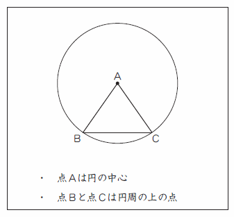 5, 次の図のように、円を使って書いた三角形ABCは、二等辺三角形になります。