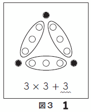 図2、図3のように○を囲み、○の個数の求め方を式に表しました。