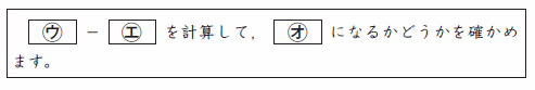 [ウ]-[エ]を計算して、[オ]になるかどうかを確かめます。