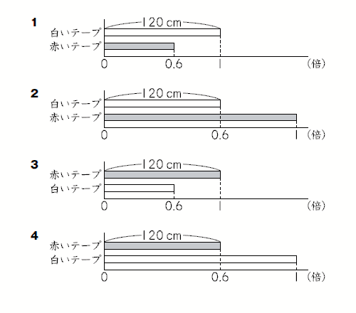 (1)赤いテープと白いテープの長さの関係を