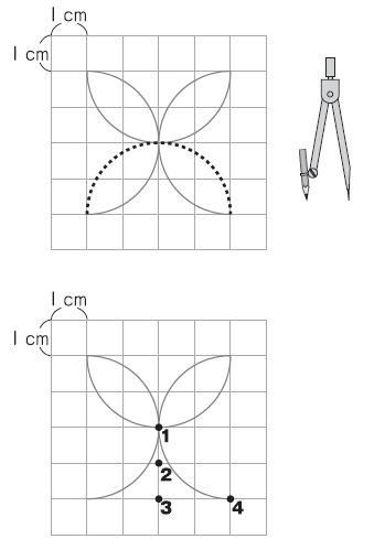 コンパスの針を刺す場所を、下の図の1~4までの中から1つ選んで、その番号を書きましょう。
