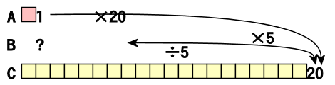 Bに5をかけたら20になったんだから、B×5=20。