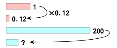 これは、1が0.12になると、200はいくつになるのという問題だ。