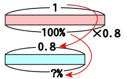 割合の1が、×0.8で0.8に小さくなったとき