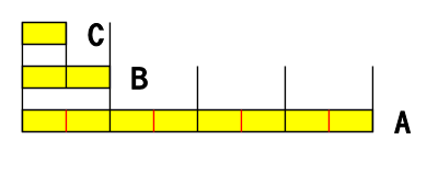 A、B、C3つの数があって、BはCの2倍、AはBの4倍です。