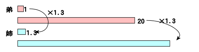 1枚のクッキーは、×1.3光線を浴びて 1×1.3=1.3枚