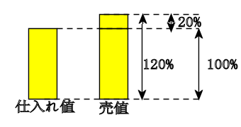 サル君のお店では、チョコレート菓子に仕入れ値段の20%の利益を考えて、120円で売りました。