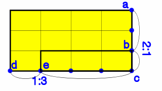 大きい図形の面積は20c㎡です。ab:bc=2:1