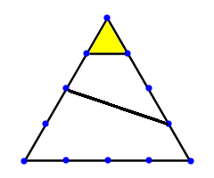 中くらいの、黄色い部分を含む三角形から、上の三角形を引けば良いね。