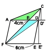 みどり色の三角形ACDの面積は何平方センチメートルでしょう。