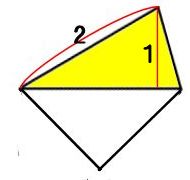 二等辺三角形の斜めの線の長さを2とすると、?で示した高さはいくつになりますか。