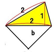 そして二等辺三角形の面積は1になります。