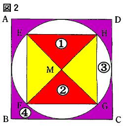 そして、その円の円周上に4つの頂点がくるように正方形EFGHと対角線を書く。