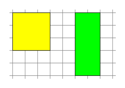 黄色と緑のタイル、どっちが大きいだろう。