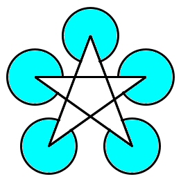 星角形の頂点に、頂点を中心として半径4cmの円が5つ書いてあります。