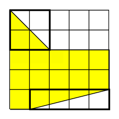 三角形2つと、長方形と正方形に分けて