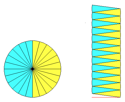 底辺の長さは、半径の1mにどんどん近づいていく。