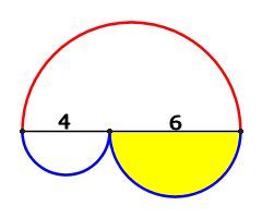 直径10cmの半円と直径4cmの半円と直径6cmの半円があります。