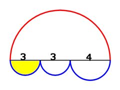 直径10cmの半円と直径3cmの半円2つと直径4cmの半円があります。