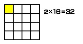 この正方形の辺の長さを何倍かして32c㎡正方形を作りました。