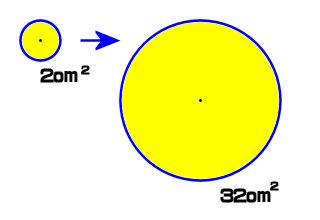 この円の直径を何倍かすると面積が32c㎡になりますか。