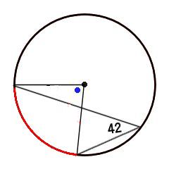 赤い辺の円周角と中心角と考えて