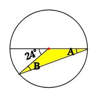円と、その中心を通る線と、中心と円周上に頂点のある三角形があります。