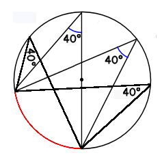 Xと40°とは、同じ赤い色の円周の上にあります。