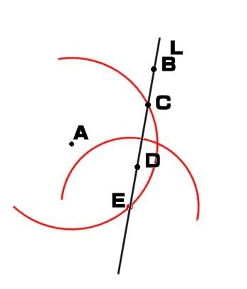 線分外の点Aから、線分Lに垂線を書きなさい。