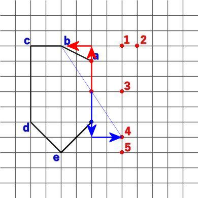 点bは、中心から上へ3ます、左へ2ますの位置にあります。